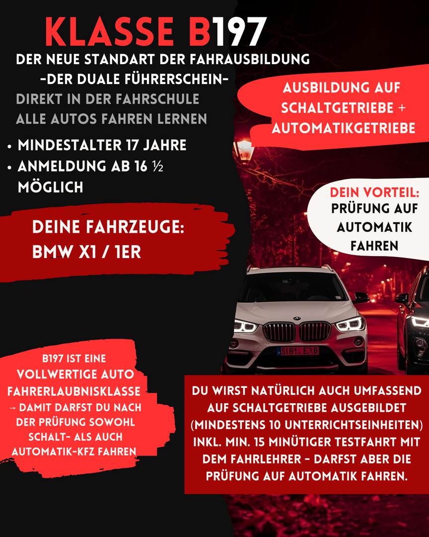 Oft ist B197 sogar etwas günstiger, da viele Schüler mit Automatikfahrten schneller sicher fahren lernen.