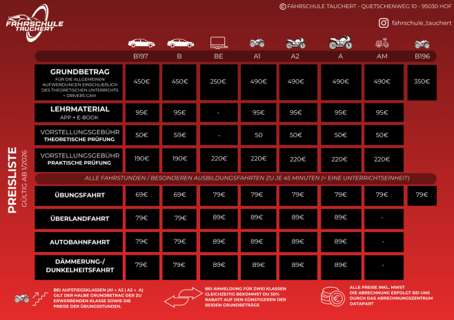 Diese Gebühren werden von externen Stellen erhoben und sind für alle Fahrschulen verbindlich.
